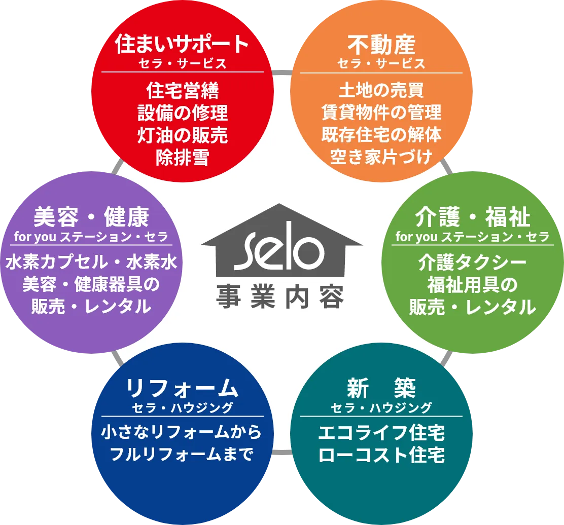 リフォームをはじめ、エコライフ住宅やローコスト住宅などお客様にあった建売住宅の販売、住宅設備の販売や不動産事業、健康と美容をサポートするサロンなど多岐にわたる事業を展開しています。